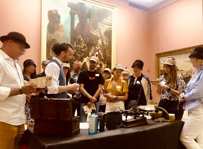 – 13h30 : Pour les groupes de plus de 40 joueurs, début de l’activité type cluédo géant. Défis, énigmes & enquête pendant environ 2h !
